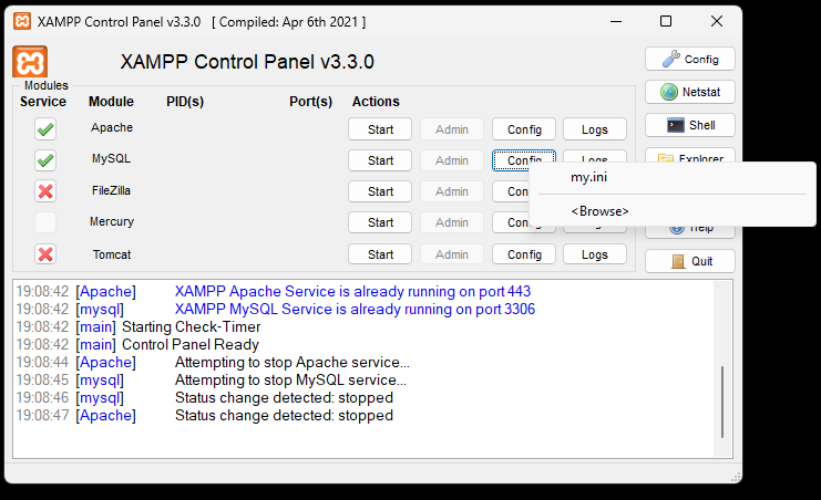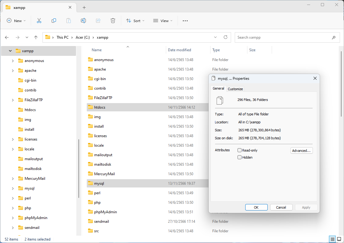 โดยทำการย้าย ทั้ง htdocs และ mysql ไปทั้งไฟล์ และลบข้อมูลภายใน htdocs และ mysql เท่านั้น เราจะไม่ลบโฟลเดอร์ทิ้งทั้งหมด เพราะอาจจะทำให้ตัวโปรแกรมไม่สามารถรันได้