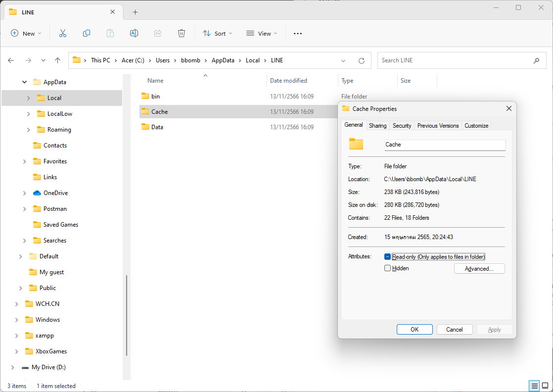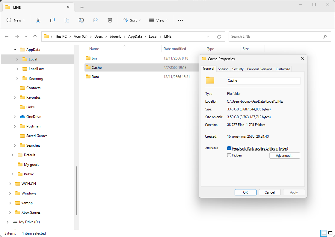 สำหรับใครที่ใช้ line เป็นประจำอาจจะไม่ได้สังเกต ซึ่งผมก็เป็นหนึ่งในนั้น จากรูปภาพที่ 1 ก็จะสังเกตเห็นถึง Cache ที่มีขนาดมากถึง 3.43 GB เลยทีเดียว แต่ไม่แนะนำให้ลบโดยตรง ให้ไปลบใน Line App เอาจะดีกว่า ซึ่งเราสามารถเคลียร์ได้เลย ไม่กระทบต่อข้อความ รูปภาพ หรือวีดีโอ ตามรูปภาพที่ 2-3