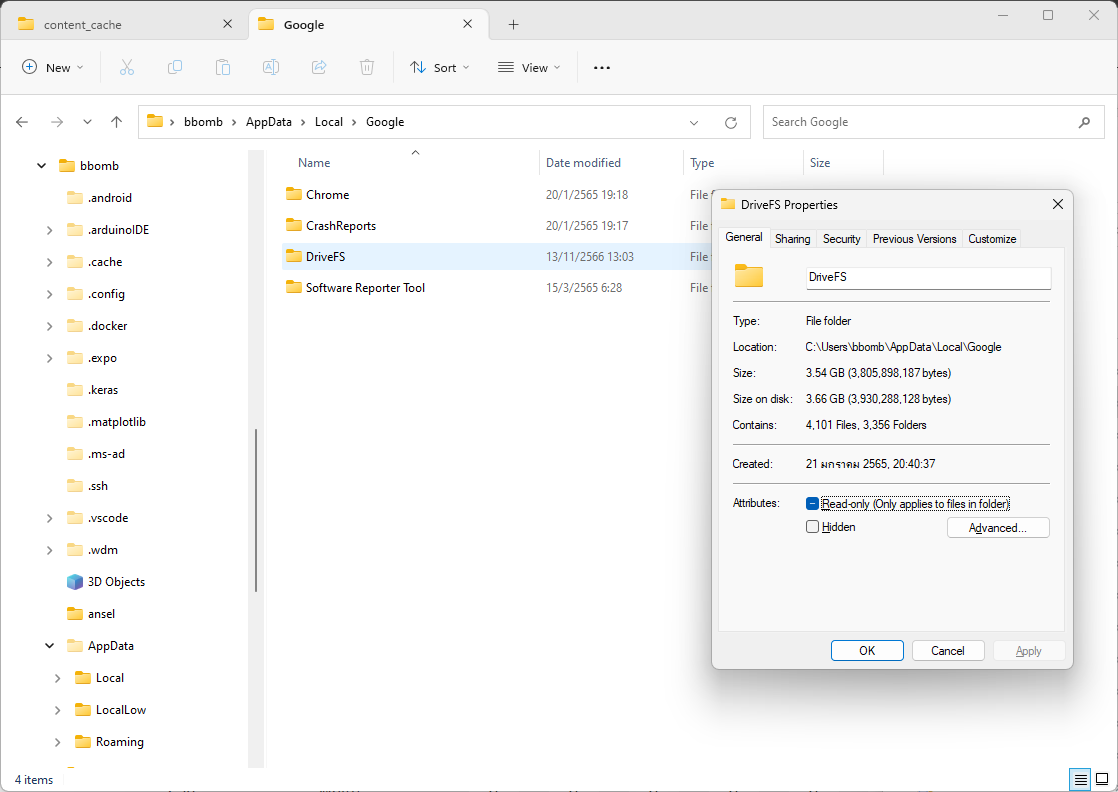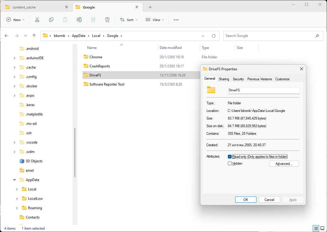 สามารถเข้าไปดู แคชของ Google drive ตาม path นี้