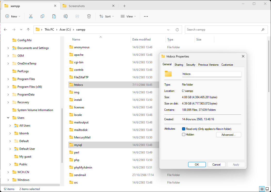 สำหรับโปรแกรมเมอร์บางคนที่มีการใช้ xampp ถ้ากังวลเรื่องขนาดของ drive c ก็แนะนำให้ย้ายไฟล์ไปยัง drive d