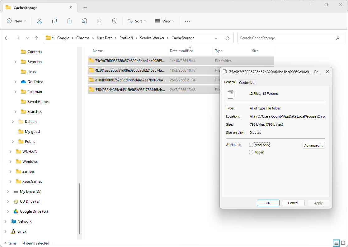 %LocalAppData%\Google\Chrome\User Data\{User Profile}\Service Worker\CacheStorage