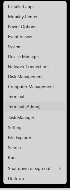 - คลิกขวาที่ Windows Button และเลือก Terminal (Admin)