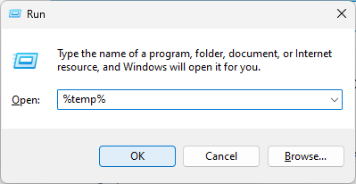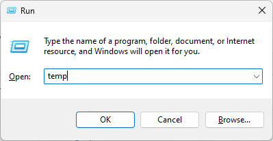 - พิมพ์ temp โดยใช้คำสั่ง %temp%