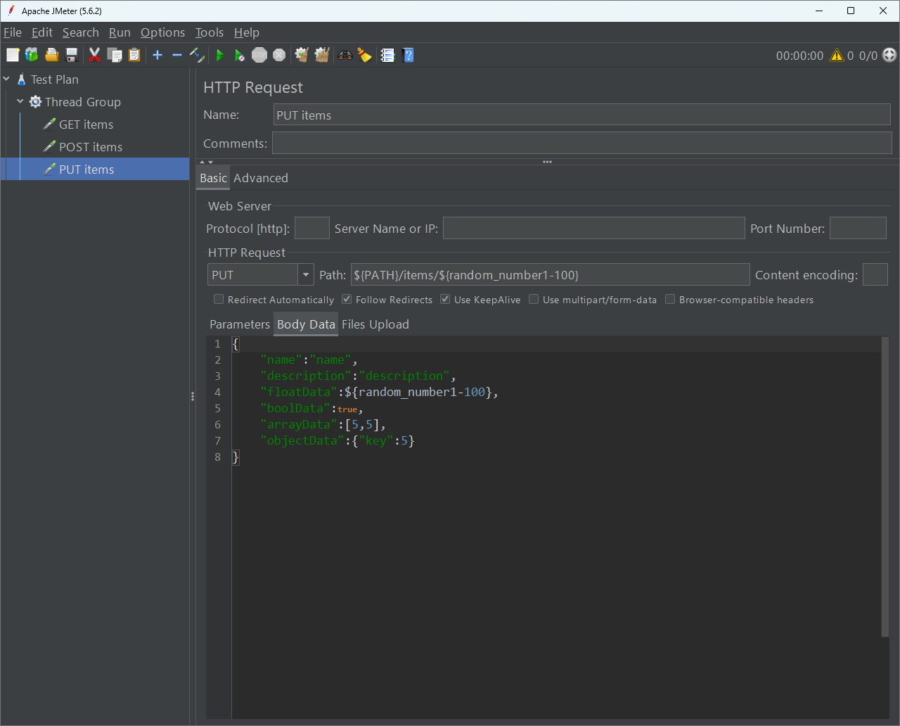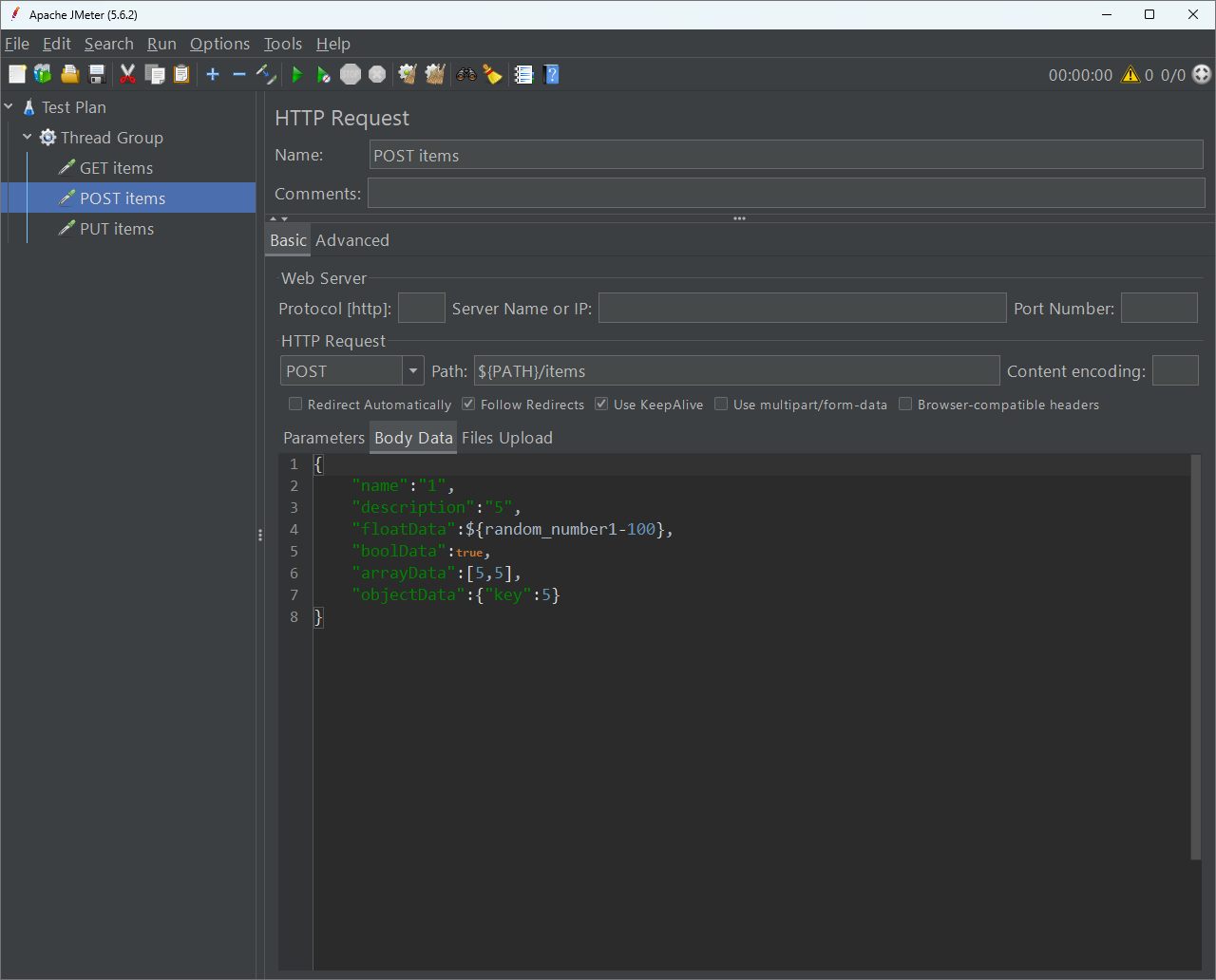 ค่าตัวแปรนี้จะไม่ซ้ำในแต่ละการ request เพื่อให้มีความสมจริง ค่านี้ผมเอาไปใช้ใส่ทั้งใน path และ body โดยสามารถตั้งค่าตามรูปภาพได้เลย