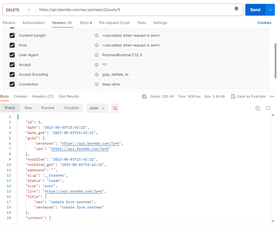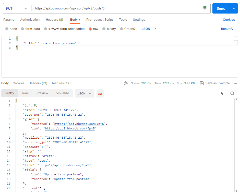 ซึ่งก็จะเห็นการตอบกลับจากฝั่ง wordpress ว่ามีการสร้าง post เป็นที่เรียบร้อย