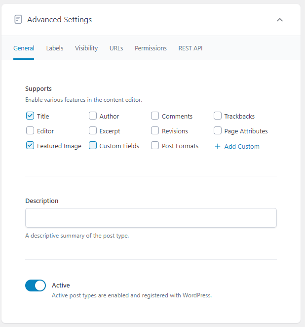 - หา Post type ที่เราเพิ่งสร้างขึ้นมาและเปิดใช้งานจากนั้นกด save ได้เลย